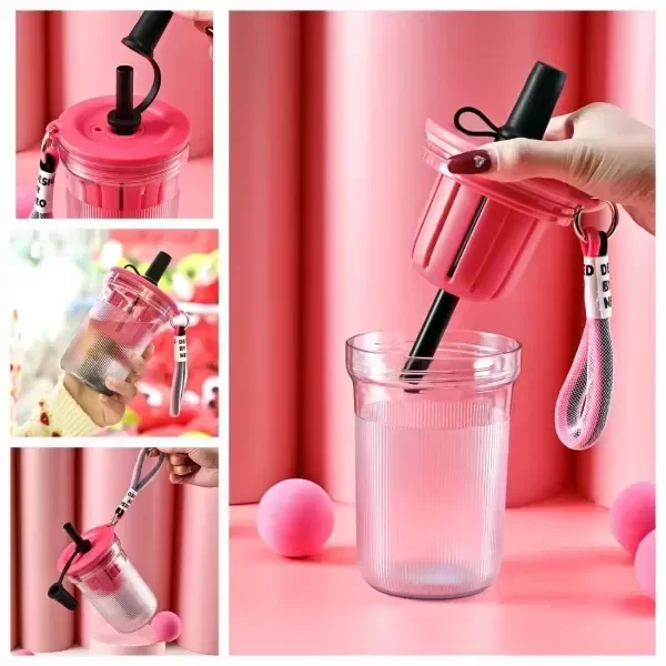 Cuenta con un filtro en su interior para colocar frutas o té. Ideal para estar llevar a cualquier lugar