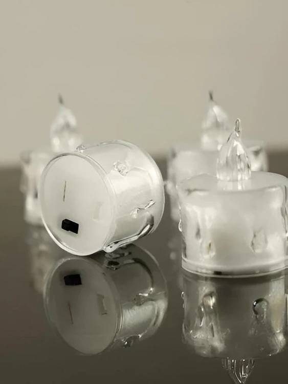 Velitas led de luz cálida chica, cuenta con un interruptor de encendido/apagado, funciona con 3 pilas de botón LR1130 (incluidas)