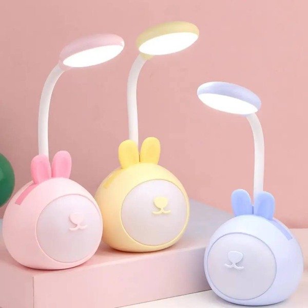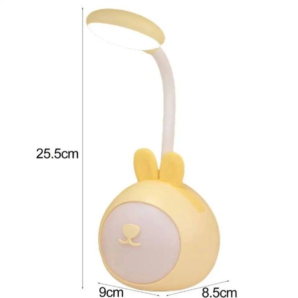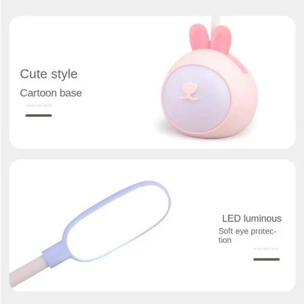 Lampara led, base diseño de animalitos. El brazo flexible permite ajustar a cualquier ángulo y se mantiene rígido. Práctico sistema recargable (no necesita estar enchufada al momento de usar, cable USB incluido