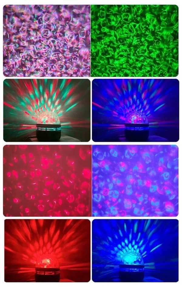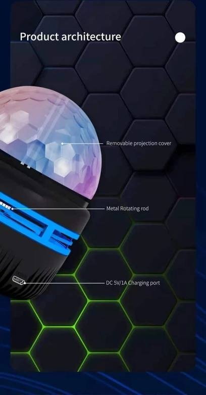 Cuenta con 7 proyecciones distintas, una base giratoria y en la parte inferior es táctil, permitiendo cambiar la proyección.