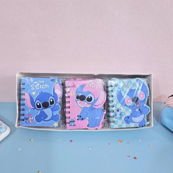libretitas con diseño de "Stitch",super tierno, sus hojas son rayadas y tienen señaladores.
