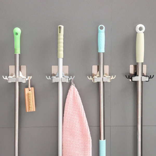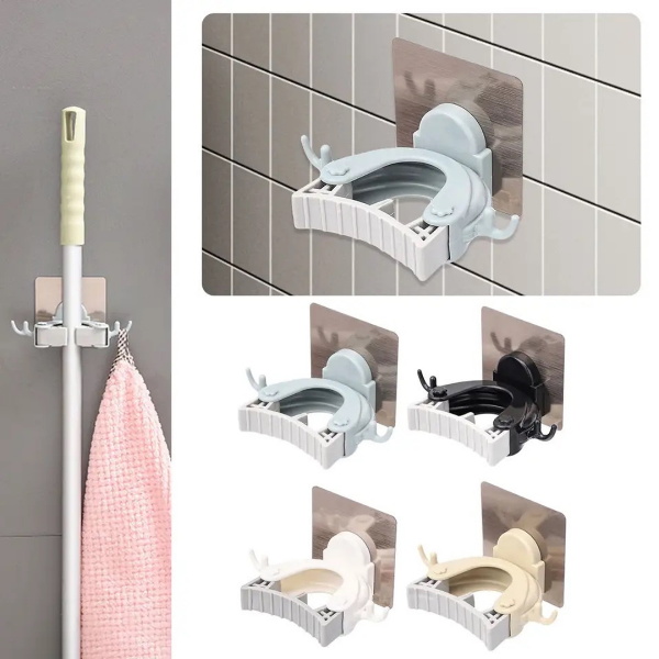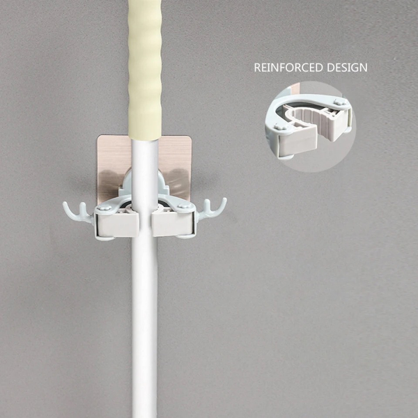 Clip para asegurar palos de escoba, rastrillos, secador o utensilios.